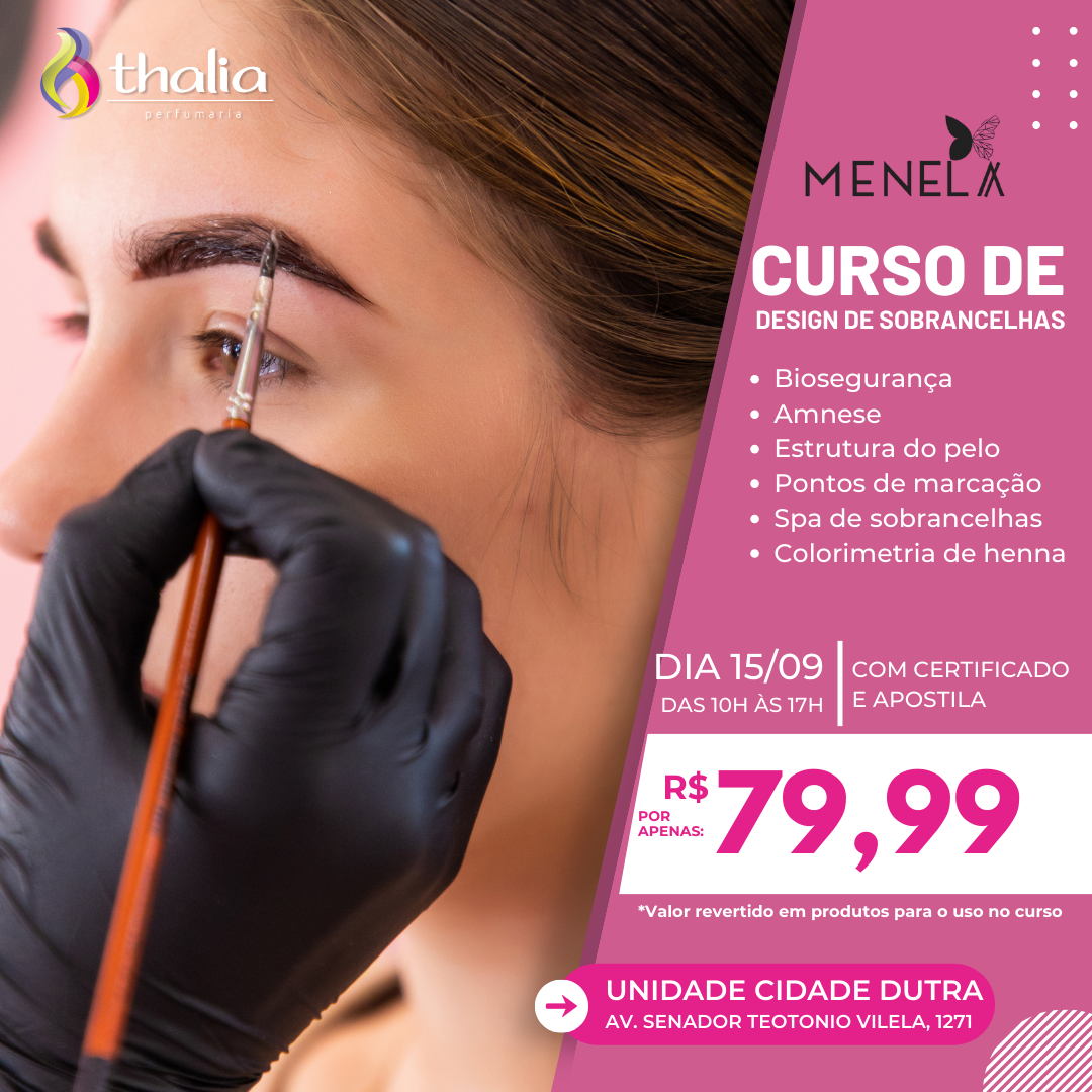 Descubra como transformar sobrancelhas e valorizar a expressão facial com técnicas profissionais no curso de Design de Sobrancelhas da Thalia Perfumaria! Ideal para iniciantes e profissionais da área da beleza, o curso ensina desde o visagismo até os métodos de modelagem, simetria e correção.